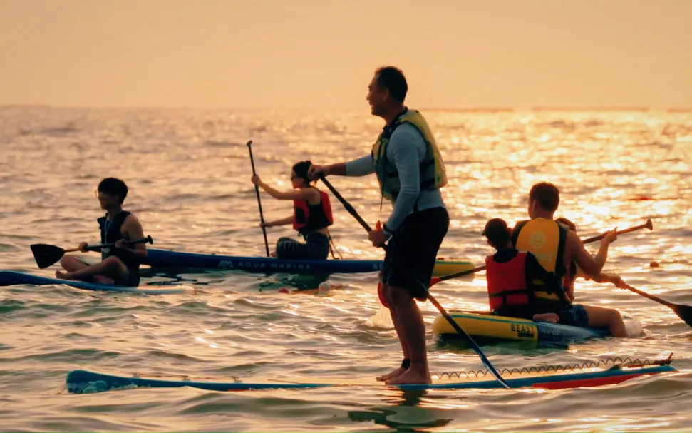 若想体验更具文艺气息的滨海生活,不妨驱车前往荣山寮村。这处保留着原始渔村风情的海边宝藏地,聚集了海边书屋、咖啡馆、文创小院等特色店铺,还可体验桨板等水上运动,在碧海蓝天间感受悠闲与活力。
