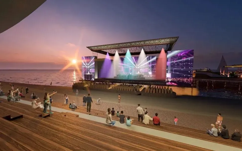 日霞海岸海上舞台效果图。东方市起航酒店供图