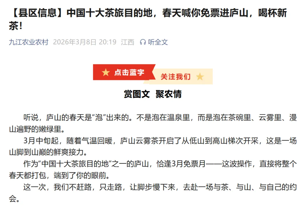 △庐山发布免票信息(图片来源:九江农业农村截图)