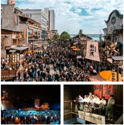 ▲衡山渡。免门票畅游全街区,常态化演出免费看。汉服租赁、非遗手作等体验单独收费。