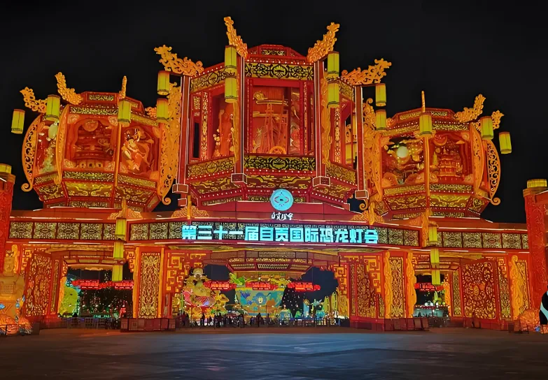 第七站:夜游釜溪(中华彩灯大世界)“五岳归来不看山,自贡归来不看灯”。虽然灯会主要在晚上,但现在的彩灯公园已经是全年开放的景区。您可以看到“鲲鹏展翅”、“赛博朋克”等巨型灯组,科技与传统结合得非常震撼。游览策略: 建议17点入园,先看日景,再等18:30开灯。必打卡“妙音舞台”和“王者荣耀”灯组。福利: 2026年凭川超自贡主场门票,这里可以半价入园!