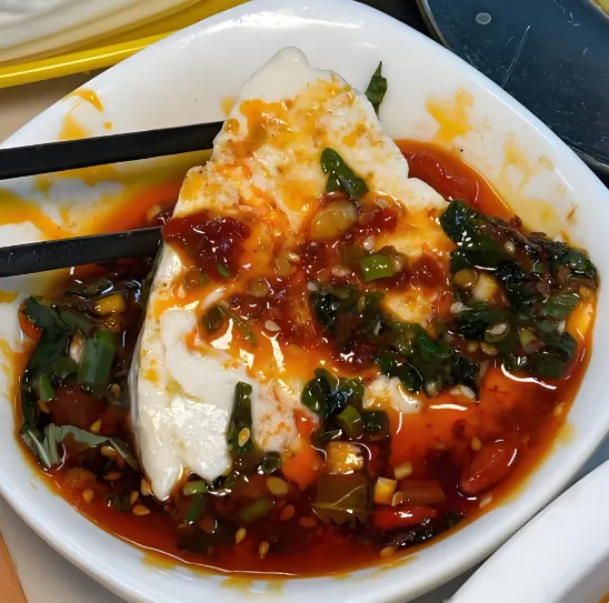 第二美食:富顺豆花“富顺豆花,嫩得像灰馍儿”。这不是普通的豆腐脑,而是用优质黄豆点卤而成的嫩豆花。关键在蘸水!用二荆条辣椒、花椒、芝麻等调制的红油蘸水,蘸一下,入口即化,麻辣鲜香。推荐店: 富顺县城的“李记豆花”,或者市区的“富顺鸡婆头”面馆也有卖。价格: 人均20元,一碗豆花一碗饭,管饱。