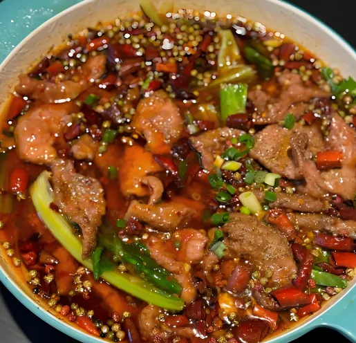 第三美食:水煮牛肉自贡的水煮牛肉讲究“猛、快、烈”。选用黄牛里脊,切得薄如纸,用淀粉上浆,在滚汤中烫熟,铺在豆芽上,最后泼上一勺滚烫的双椒油(海椒和花椒炼的油),“滋啦”一声,香气炸裂。推荐店: “盐邦食府”或者“飞虹鱼馆”,做得都很地道。特点: 牛肉滑嫩,配菜入味,超级下饭。