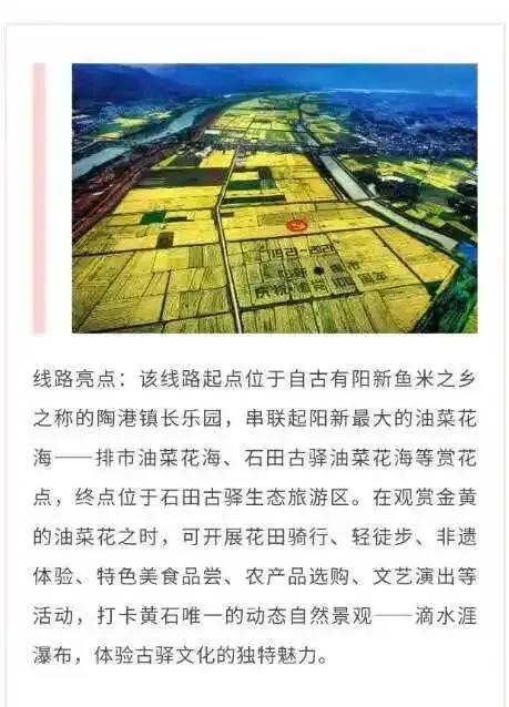 💙线路亮点:金黄花海、古驿风情、非遗体验