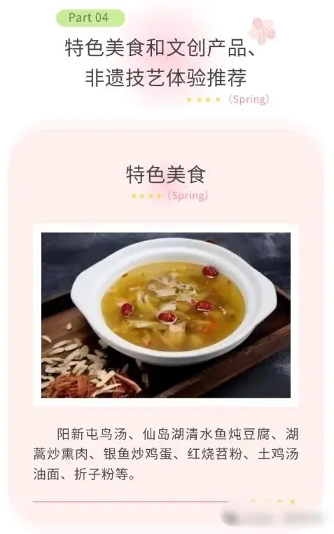 ❤️亲子活动:非遗手作体验、观看采茶戏演出、品尝阳新屯鸟汤、仙岛湖清水鱼炖豆腐等地道美食。