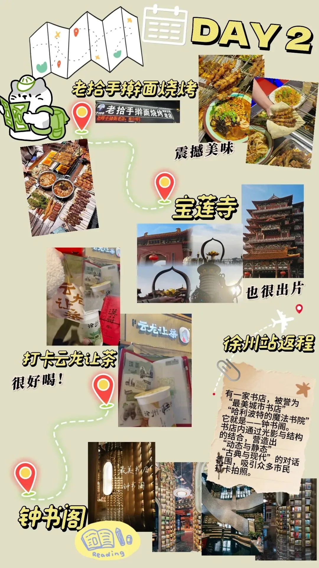 #徐州旅行 #徐州美食 #彭城打卡 #徐州两日游 #户部山 #宝莲寺 #富国街夜市 #云龙让茶 #钟书阁 #旅行日记 #春日旅行 #碳水天堂