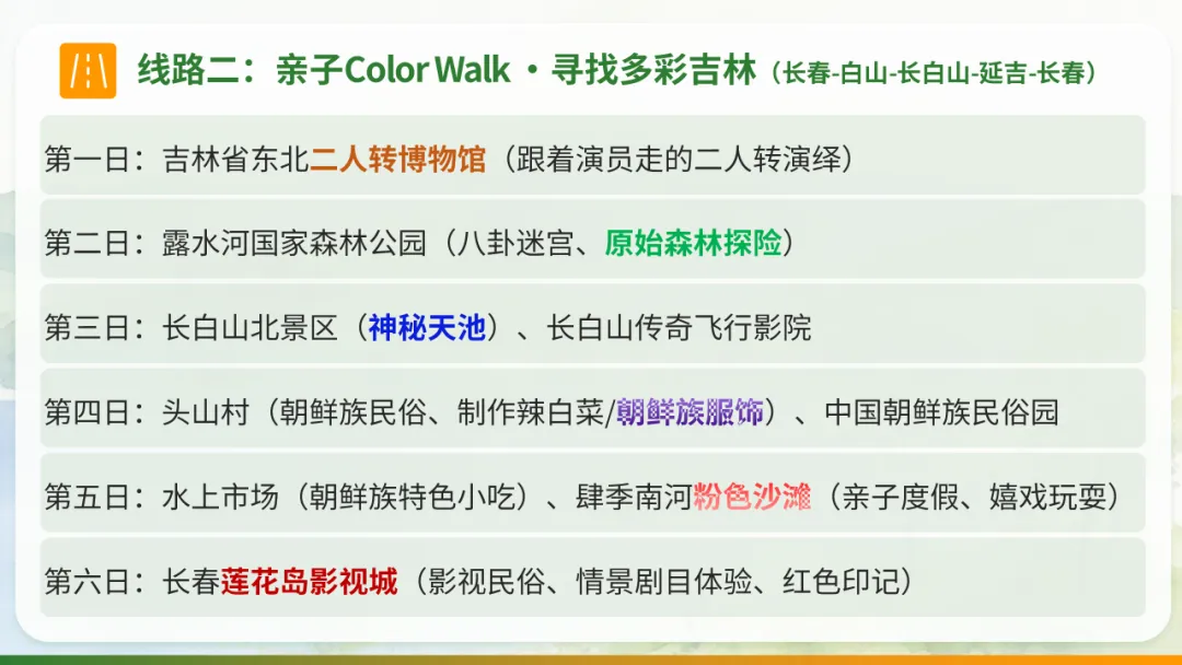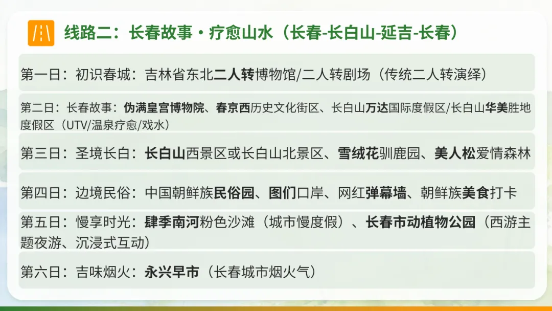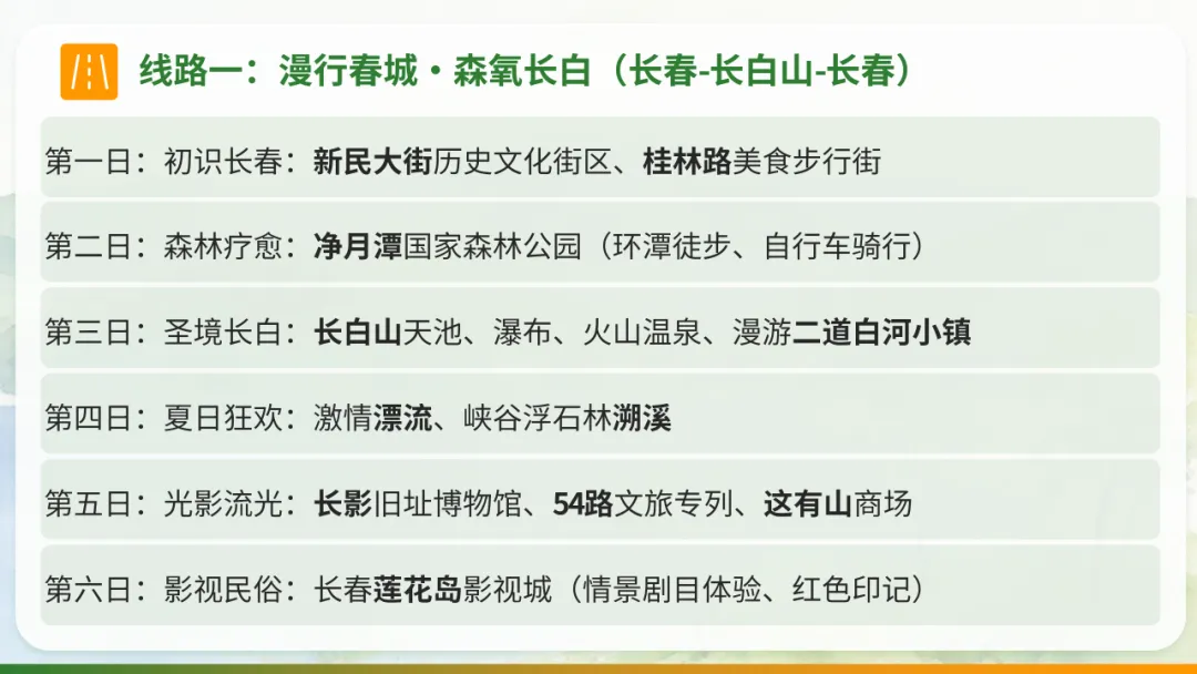 以避暑休闲康养度假为主题,深度体验长春及吉林省的人文历史、民俗风情及特色美食,在自然中疗愈身心。