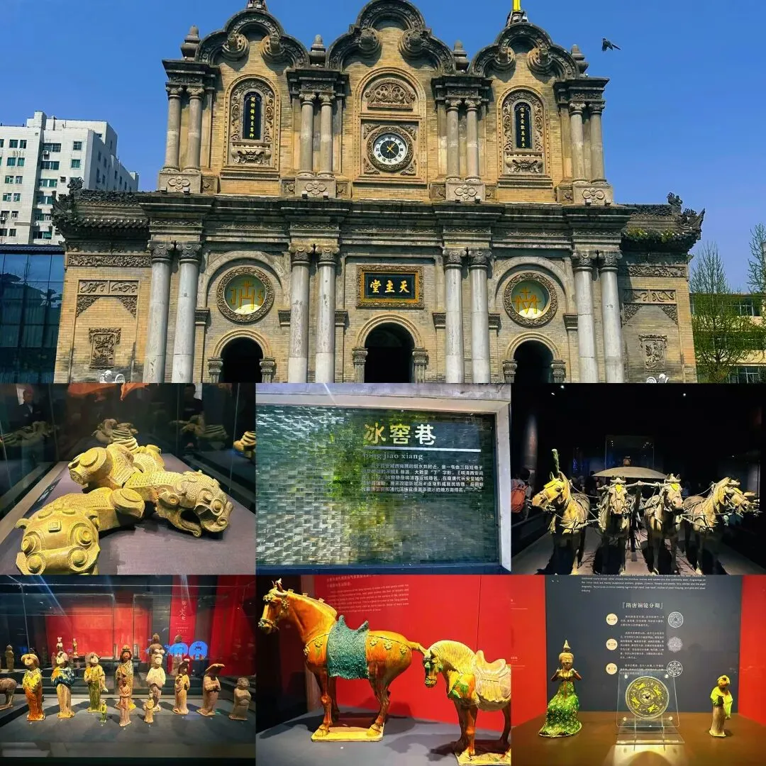 陕西历史博物馆:筹建于1983年,1991年6月20日落成开放,是中国第一座大型现代化国家级博物馆,它的建成标志着中国博物馆事业迈入了新的发展里程。借鉴了中国传统宫殿“轴线对称,主从有序,中央殿堂,四隅崇楼”的结构特点,规模宏大,典雅凝重,古朴大方,体现了民族风格、地方特色和时代精神。 博物馆分为基本陈列、临时陈列和专题陈列三大部分,展室面积11000平方米,展线长1500米。陈列文物3000多件,都是从陕西出土的几10万件文物中精选出来的,大多为稀世珍品。提前五天预约!!!需按预约时段参观!!! 西安五星街教堂:全名为圣方济各主教座堂。它是天主教西安总教区的总堂及主教府。2008年,西安五星街教堂入选第五批陕西省文物保护单位。