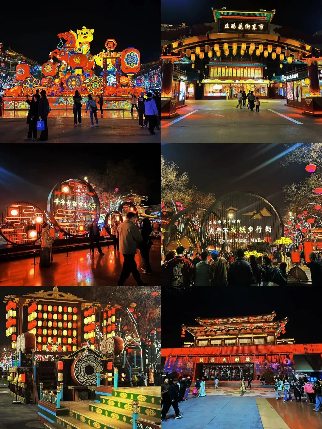 大唐不夜城:位于大雁塔脚下,北起玄奘广场、南至唐城墙遗址公园、东起慈恩东路、西至慈恩西路,贯穿玄奘广场、贞观文化广场、开元庆典广场三个主题广场,六个仿唐街区和西安音乐厅、西安大剧院、曲江电影城、陕西艺术家展廊四大文化建筑。 回民街:回民街不只是一条街,也称为“回坊”,是西安市中心回民聚集区内多条街道的统称,由北院门、北广济街、西羊市、大皮院等街道组成。这里是西安小吃的集中地,作为几百年历史的回民区,这里还能感受到浓浓的穆斯林气息。街区内有值得一看的清真寺,这里有约2万名回民依寺而居,维持着原有的宗教传统和生活习惯。同时回民街距离钟楼、鼓楼都很近。