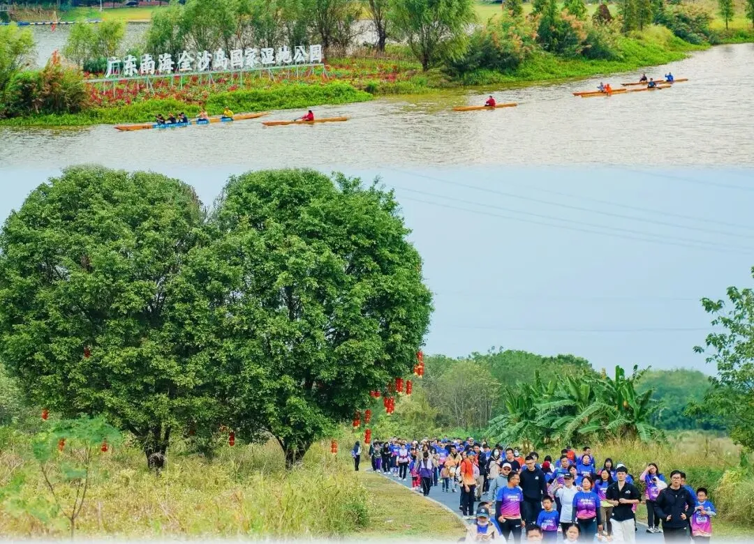 金沙户外休闲运动岛坐落于丹灶东侧江面,高空俯瞰如一叶轻舟,拥有95.83%的高湿地率,是佛山南海唯一的国家级湿地公园,岛内水域、滩涂、林地、草地交织,42.3公里环岛河岸线适合骑行、慢跑、观鸟,植被种类丰富,还能偶遇黑翅鸢、红隼等国家二级保护鸟类,既是休闲漫步的好去处,也是亲子自然科普的理想之地。
