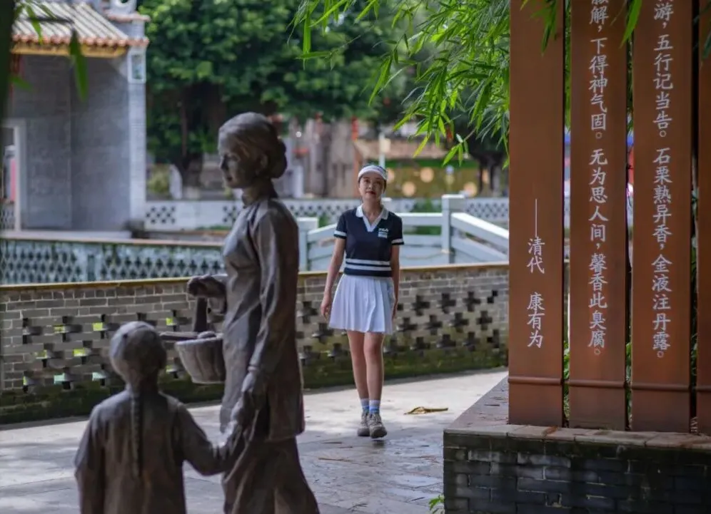 康园,融合城市配套设施和文化旅游景区等功能于一体。园区整体沿用镬耳屋的建筑风格,青砖红瓦,年代感十足;游客漫步在园内绿道上,石板、灯笼、花卉等活泼的颜色与静谧的古建筑形成鲜明对比。在这里,可以邂逅青砖红瓦,打卡拍照超出片!或与先贤来一场促膝长谈,了解丹灶深厚的文化底蕴,在积淀知识的同时增强文化认同感。