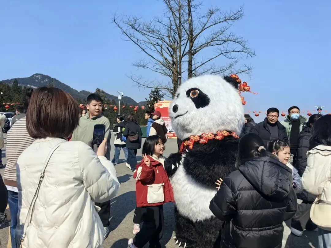 3️⃣熊猫人偶现场巡游,给小朋友们发小糖果,与小朋友互动合影。大人可拍摄照片或视频发朋友圈,带有“华蓥山” “华蓥山大熊猫苑”等字样,即可领取熊猫徽章等文创礼品,轻松get出游纪念好物。