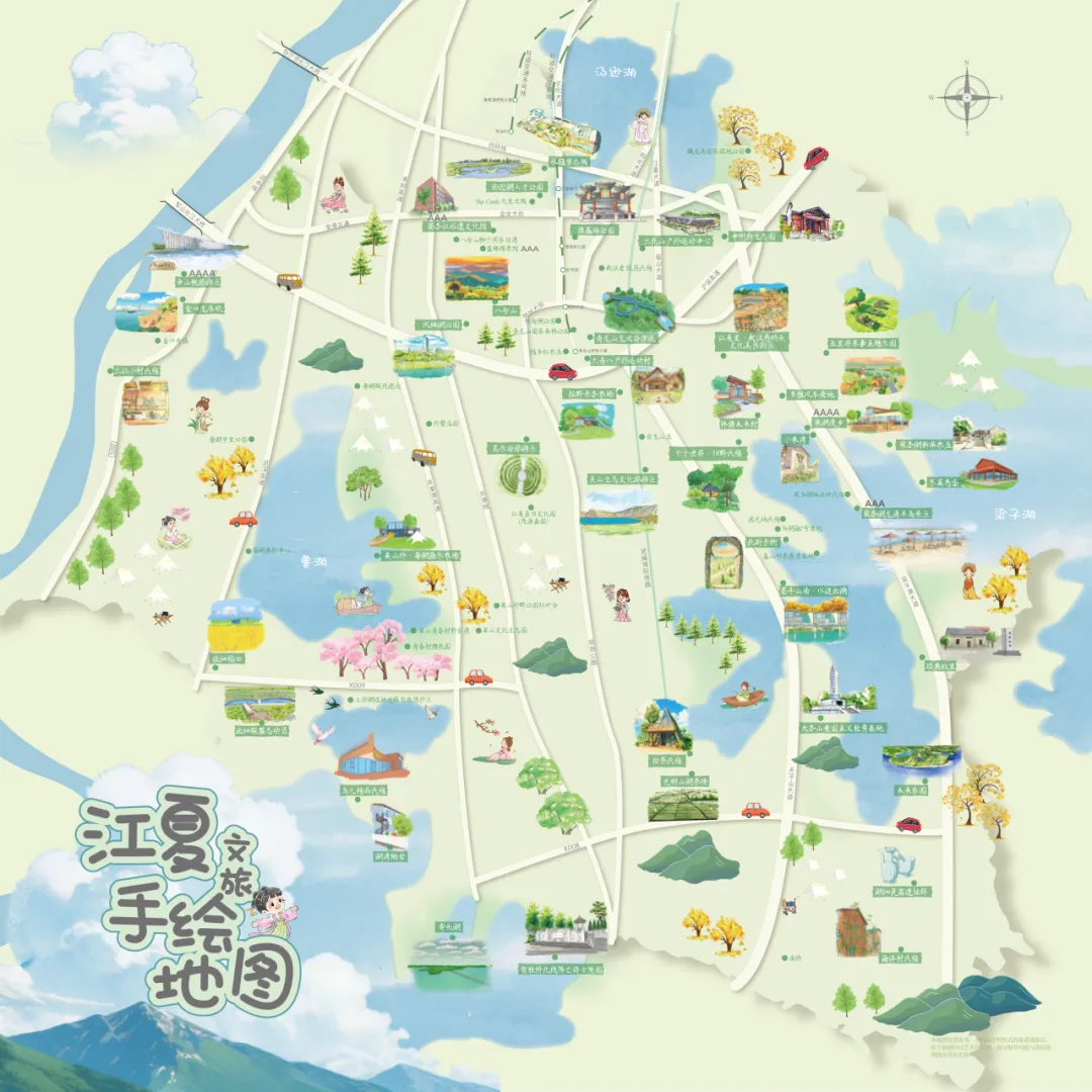 有了江夏文旅手绘地图这个超酷“导游”,就像给咱的吃喝玩乐之旅装上了精准导航。跟着它蹦蹦跳跳地出发,美食在召唤,好玩的地方在招手,保证在江夏玩得那叫一个不亦乐乎,绝不迷路哟!