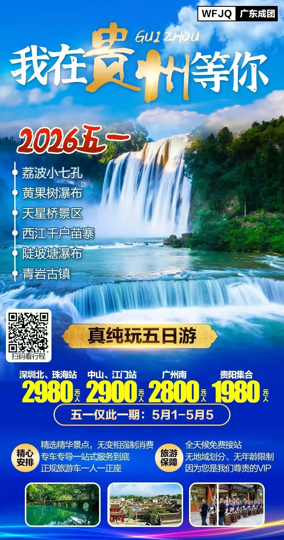 8、黄果树 小七孔 西江苗寨5天 2980元