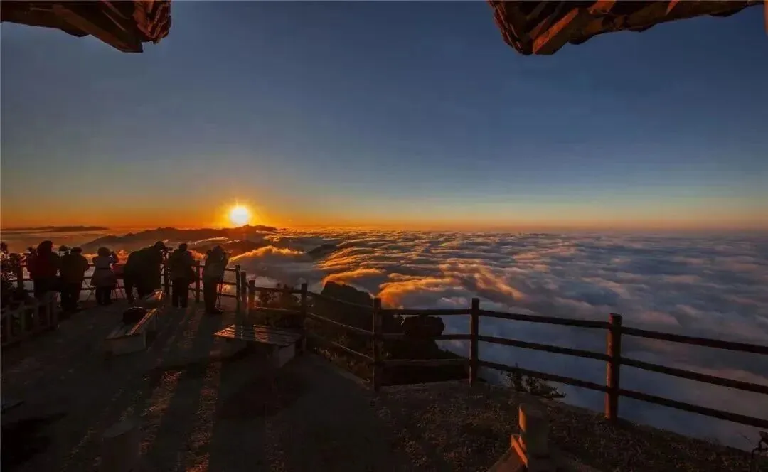 玻璃观景台,采用三层钢化玻璃打造悬空视觉效果。如遇云海翻涌,可看到脚下云瀑奔流与天际线破晓的震撼画面。