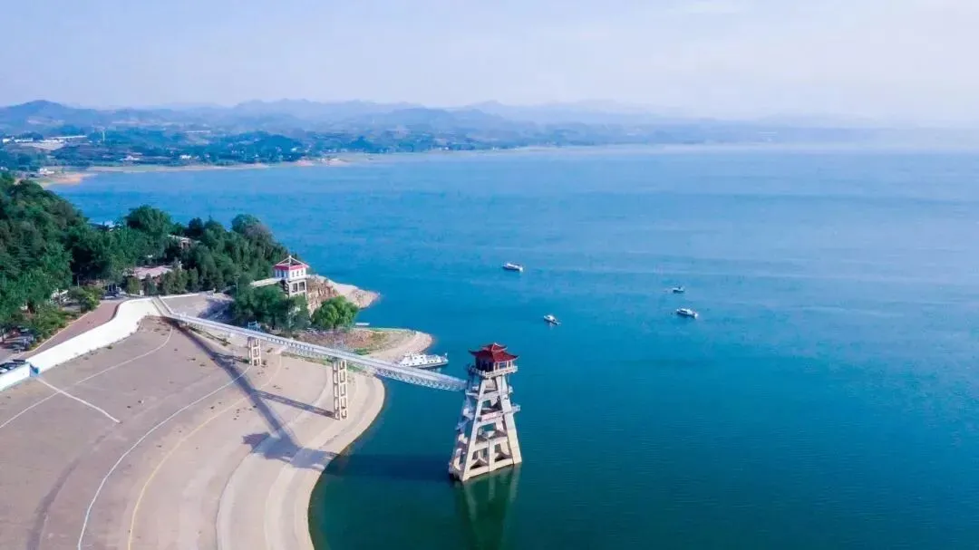 湖上烟波浩瀚,渔舟点缀其中,悠然白云,蔚蓝天空……这就是洛阳的“小洱海”——陆浑湖!阳光在清澈碧绿的水面上洒下细碎的光芒,波光粼粼,闪烁着五彩斑斓的光辉。