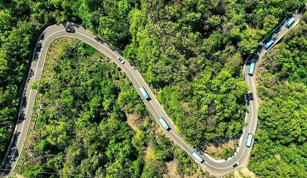 从空中俯瞰下去,这条公路如玉带缠绕在山峦间,自成一道美景。随着海拔升高,原始风景逐渐呈现,放眼望去漫山遍野的草木、连绵不绝的山峰与蓝天辉映,驾驶乐趣与沿途美景相互成就,四季景色皆有特色。