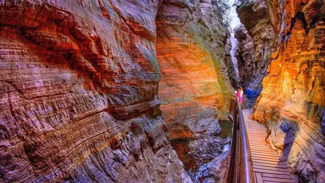 龙潭大峡谷景区位于新安县石井镇境内,是国家5A级景区、世界地质公园,是一条以典型的红岩嶂谷群地质地貌景观为主的峡谷景区,被专家誉为“中国嶂谷第一峡”“峡谷绝品”“古海洋天然博物馆”和“黄河山水画廊”。