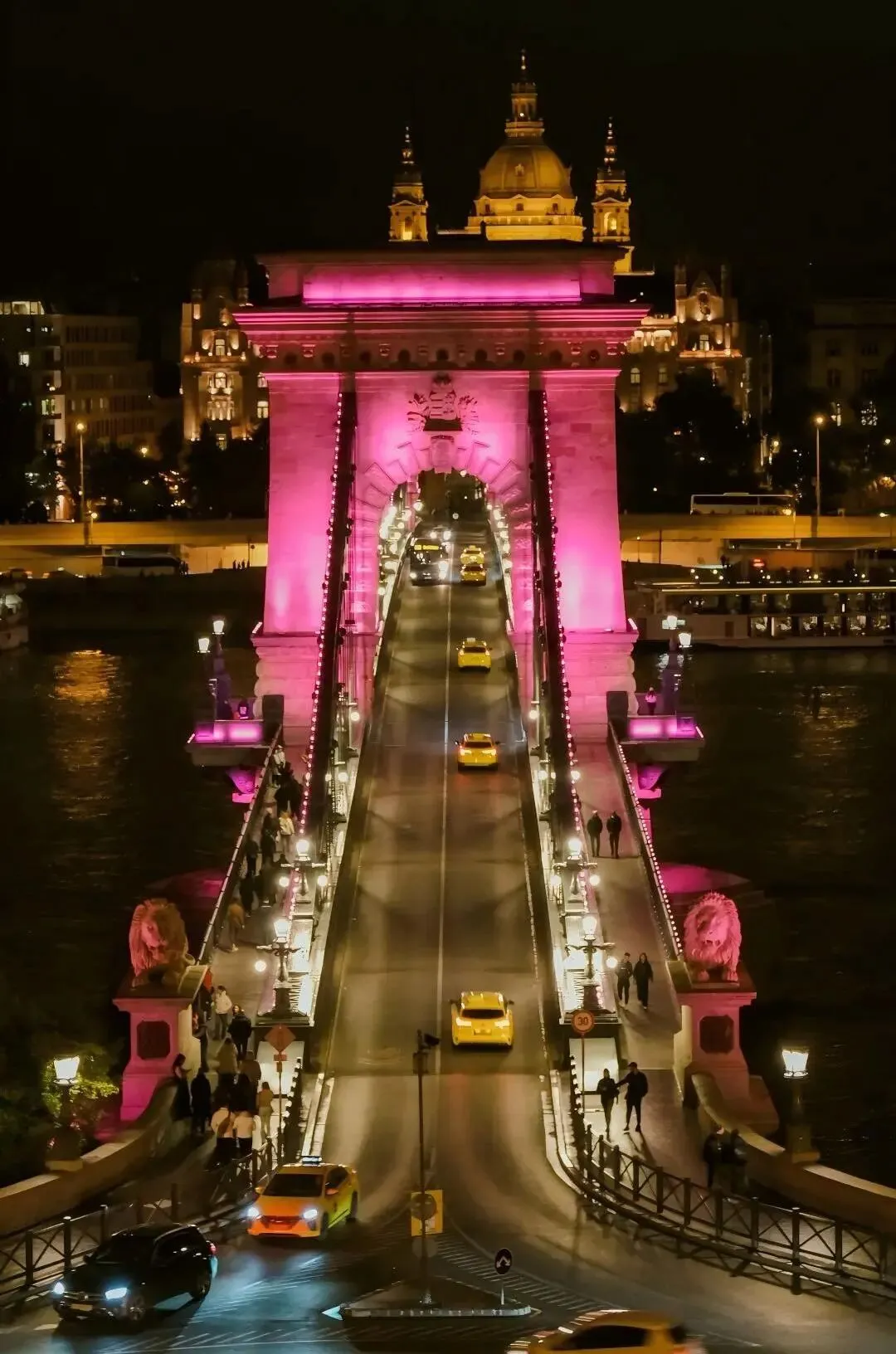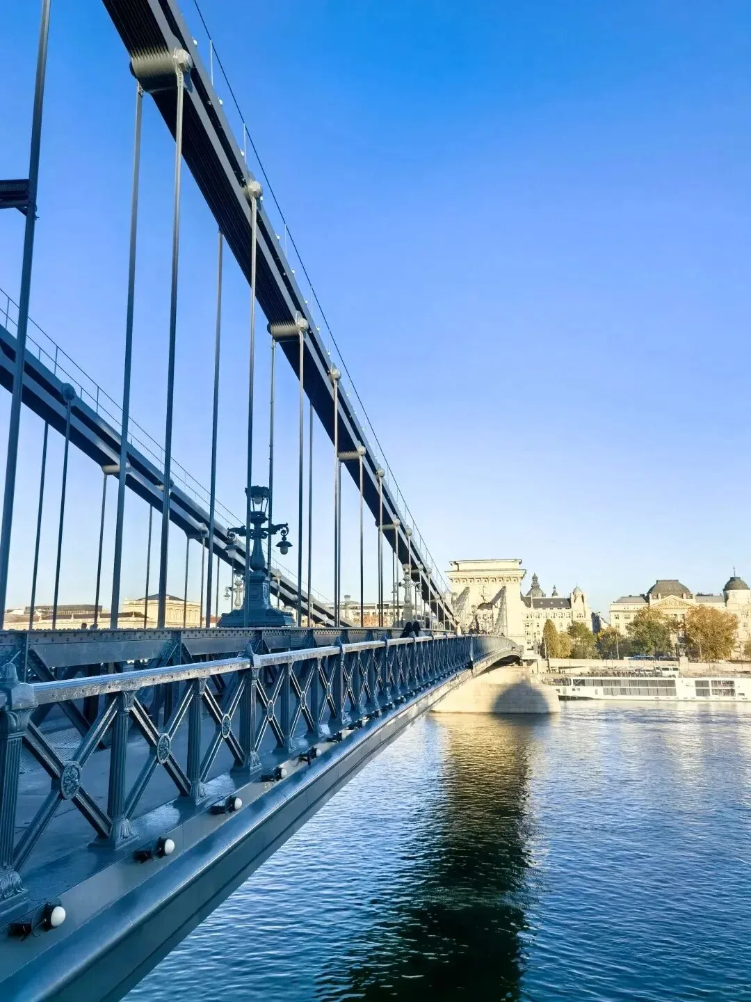 每当夜幕降临,桥身灯光点亮,宛如一条金色的项链横跨多瑙河,无论从城堡山俯瞰,还是乘船经过,都是绝美的视觉盛宴。