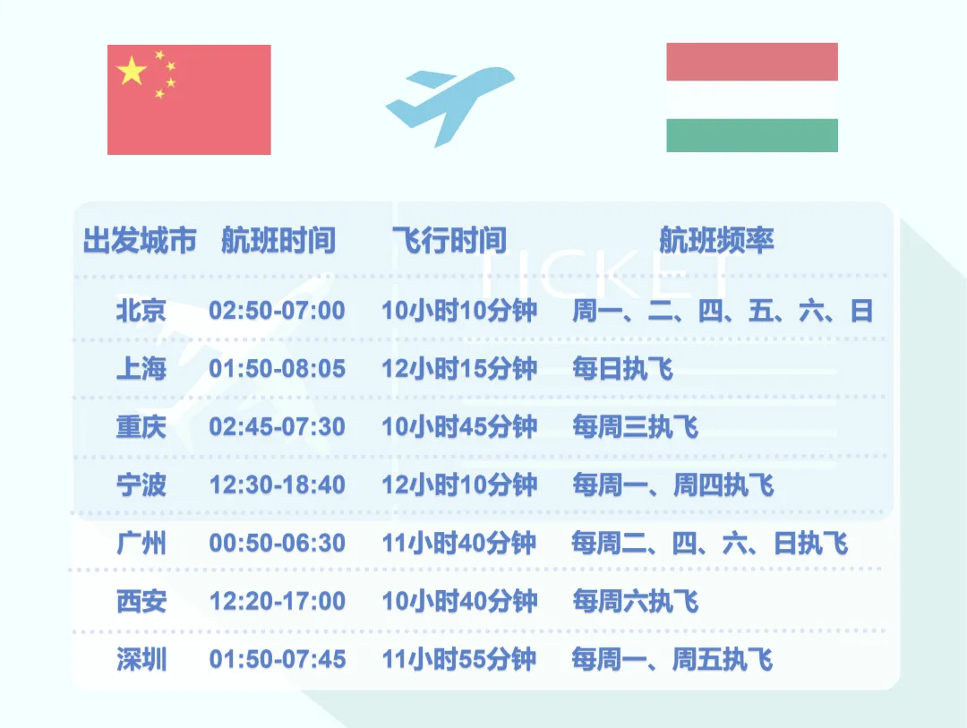 目前,从中国前往布达佩斯非常便利,以下7大城市均有直飞航班(航班时刻随季节调整,请以航司官网为准)