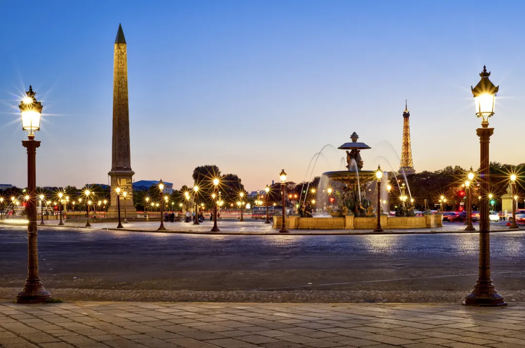 09 协和广场 巴黎协和广场,建于1757年,是一个非常美丽的广场,最初是献给路易十五的,法国人民当作展示王权毁灭的舞台。它位于香榭丽舍大道中段,从这里可以环顾大部份的巴黎美景:香榭丽舍大道、凯旋门、杜伊勒里公园、卢浮宫等等。