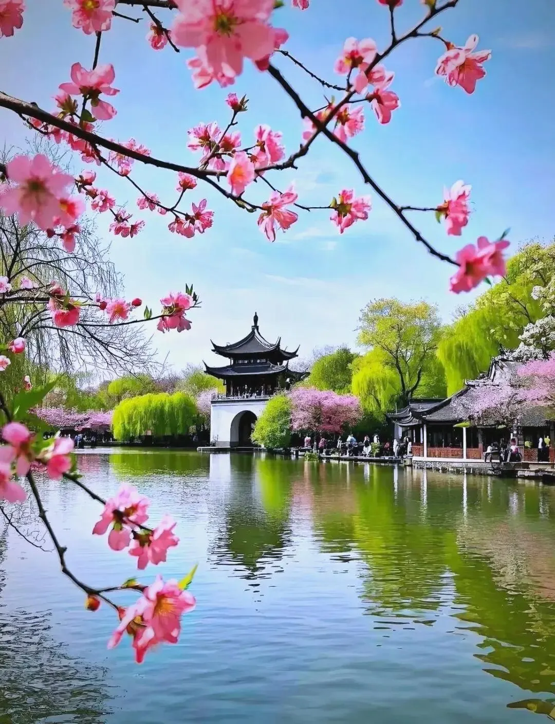 瘦西湖:烟花三月必打卡,4 月琼花、海棠、桃花与亭台水榭相融,沿长堤春柳漫步,登五亭桥远眺,尽显江南园林的春日雅致。