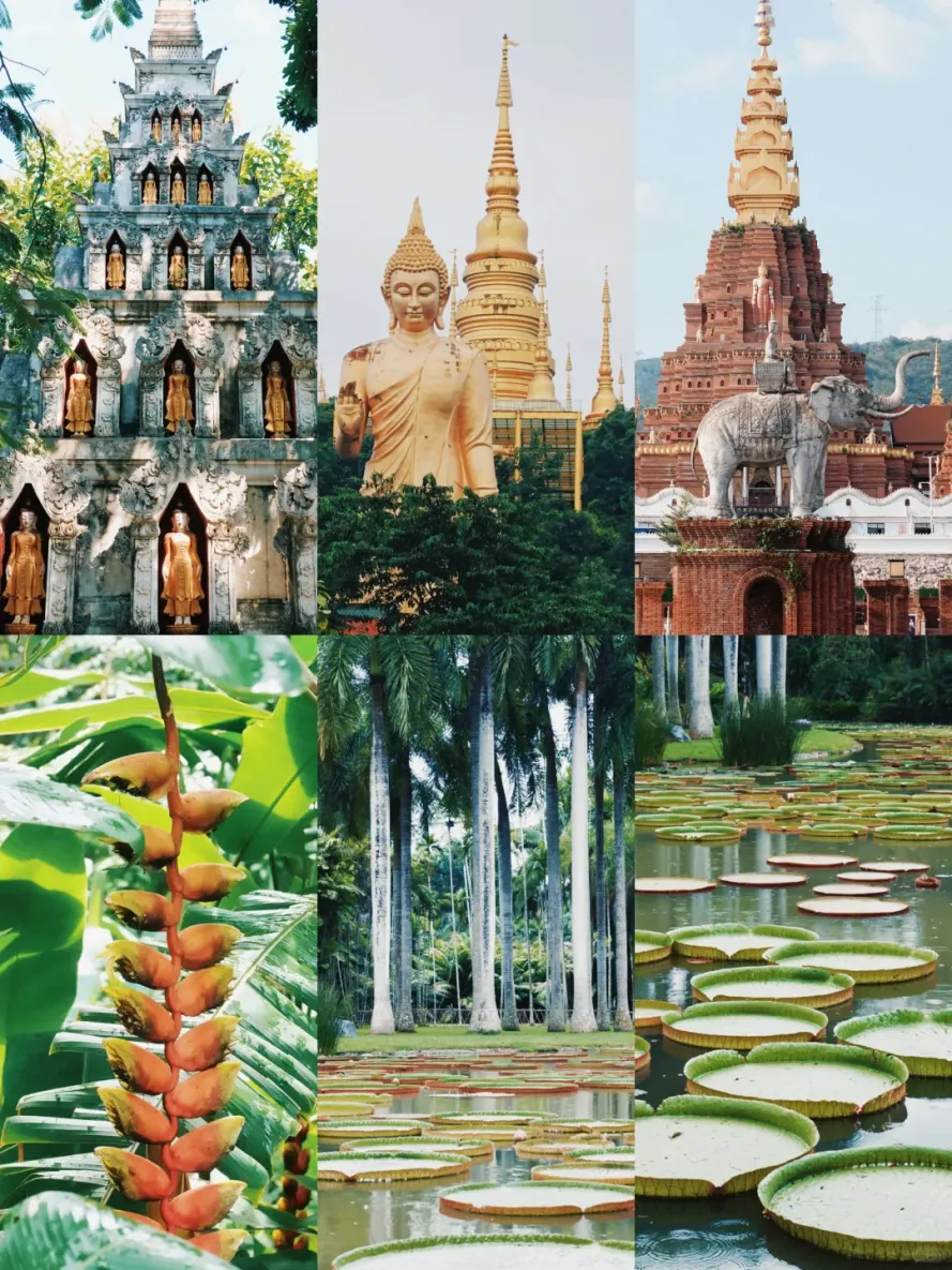 曼听公园 + 总佛寺:傣王御花园搭配金碧辉煌的佛寺,穿傣装拍人文大片。