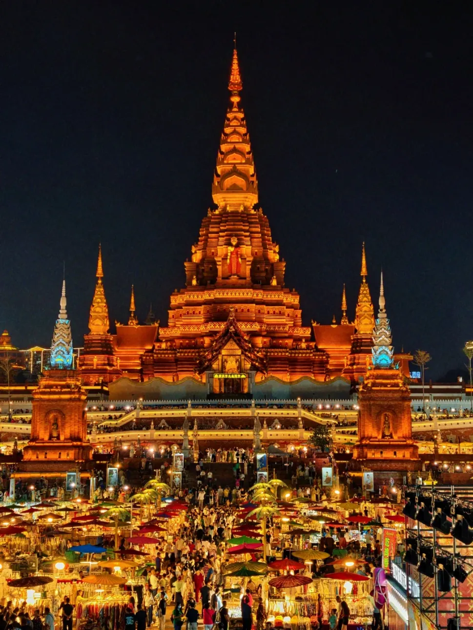 告庄西双景 + 星光夜市:白天拍傣装大片,夜晚逛亚洲最大夜市,大金塔、灯笼墙出片率 100%。