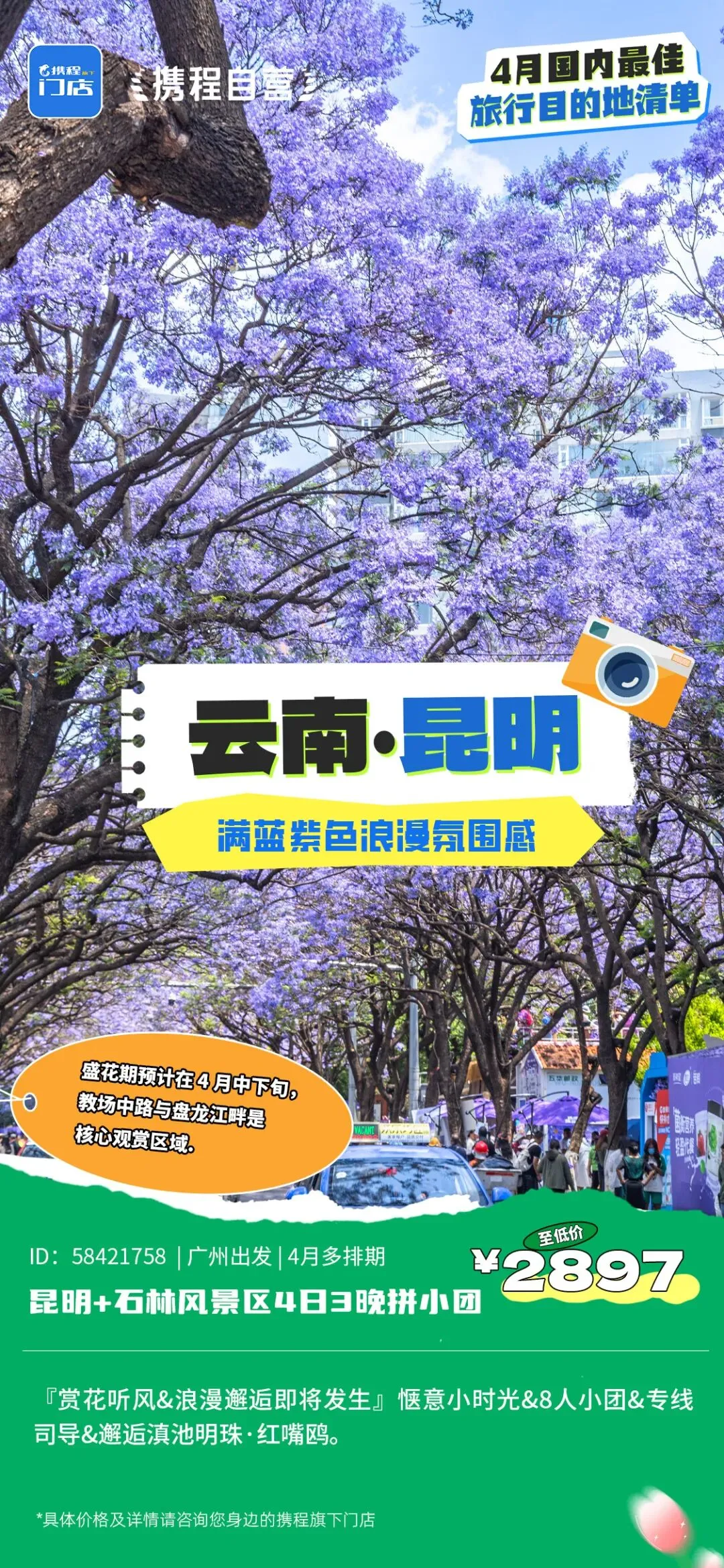 4 月的昆明,春城风华正盛,气温 在15-25℃,舒适宜人。教场中路蓝花楹盛放,2 公里紫色花道如梦幻隧道昆明市人民政府。黑龙潭杜鹃漫山,圆通山晚樱与海棠争艳昆明市人民政府。漫步翠湖赏绿柳繁花,骑行滇池绿道看湖光山色。逛斗南花市实现鲜花自由,登石林观喀斯特奇观。尝过桥米线、汽锅鸡、鲜花饼,品地道滇味。4 月错峰出行,人少景美,是感受春城花海与人文风情的最佳时节。