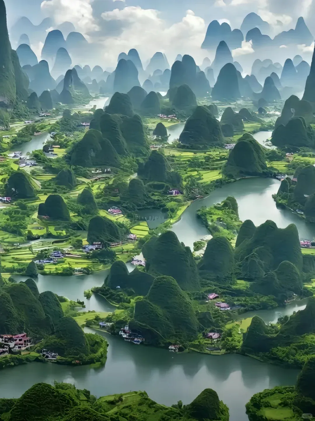 亮点:《花千骨》取景地。喀斯特峰林环抱,稻田、河流、村庄相映成趣,可竹筏漂流、骑行,体验宁静的壮乡田园。