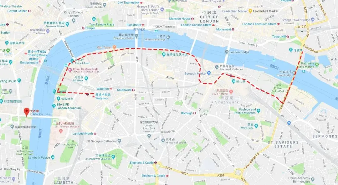 路线总结:伦敦眼 – 滑铁卢桥 – 泰特美术馆 – 千禧大桥 – 莎士比亚环球剧院 – 巴罗市场&碎片大厦 – 塔桥 – 伦敦塔