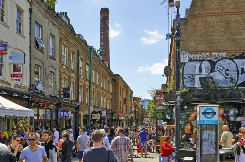 这里也是整个 Liverpool Street 也是伦敦除了 Covent Garden 之外的又一块艺术家聚集地,不仅有热闹的集市和独具特色的古着店铺,还有到处由民间艺术家们创作的涂鸦作品!