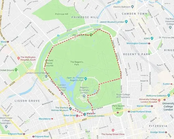 路线总结:杜莎夫人蜡像馆 – 福尔摩斯博物馆 – 摄政公园 – 伦敦动物园