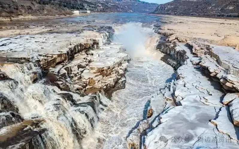春日的壶口瀑布迎来“桃花汛”,黄河水势渐涨,奔腾激荡,与两岸初绽的山桃花交相辉映,金黄色的河水更显生机。河面由400余米骤缩至50米,倾泻于石槽之中,形如巨壶注水,声若雷鸣,水雾升腾如烟似云。可近距离感受“黄河之水天上来”的磅礴气势。