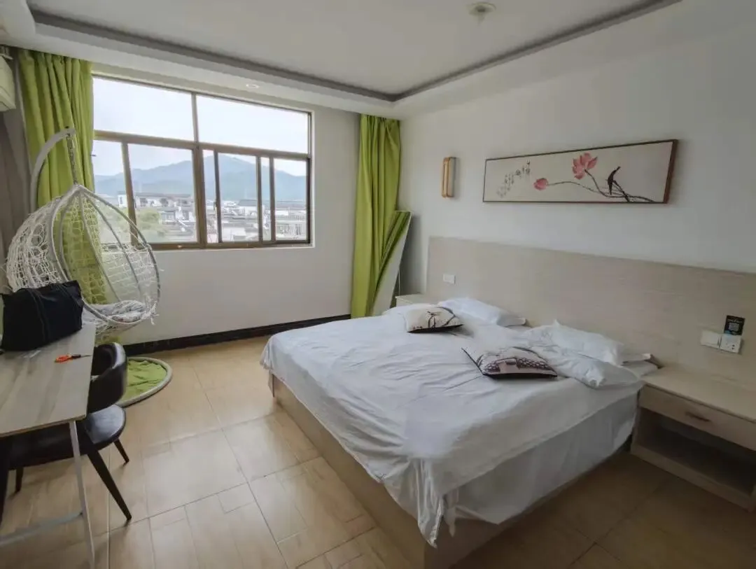 呈坎景区内的酒店价格在四位数,预算不成问题的话倒是可以考虑。景区周边价格两三百左右就有还不错的。我这次住的叫“朴舍民宿”,当时一晚价格250元,房间宽敞,干净整洁,距离景区八卦湖步行两三分钟就到了,非常近,甚至民宿天台就可以看到景区晚上的烟花,周边的饮食也不错,个人也很建议住在那一带。可以以这家民宿为心,看看方圆一两百米的住宿,地段都是挺好的。