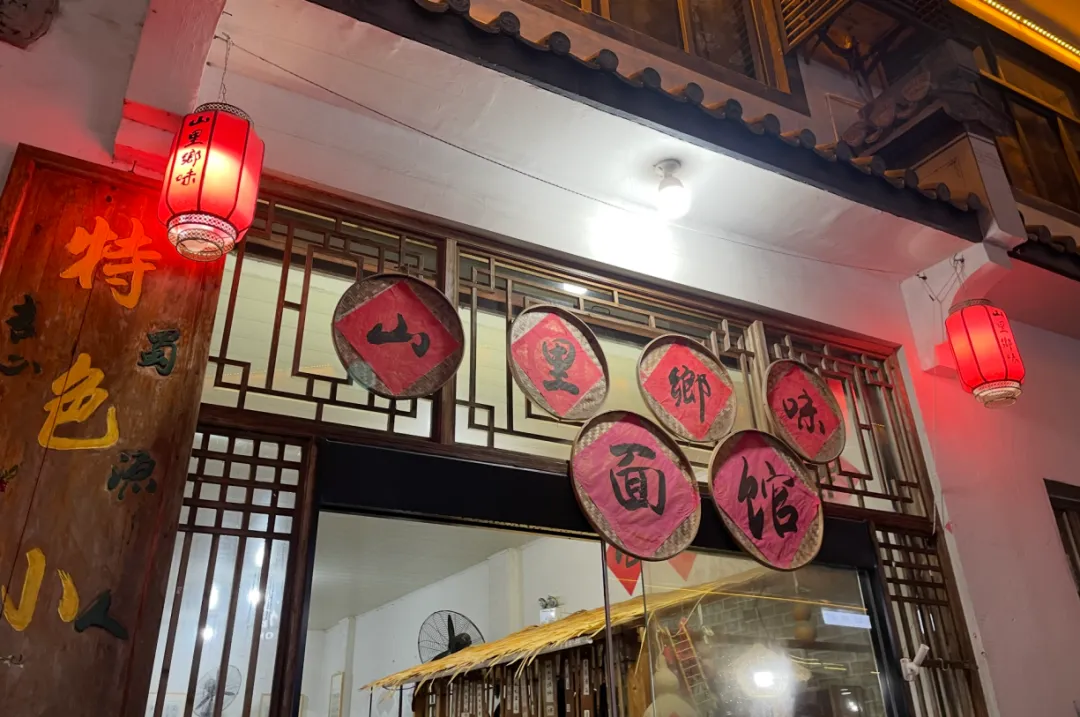 山里乡味面馆,这家也是主打面食的店,供应午餐晚餐。除了各类面食,酒酿小圆子味道也很不错。