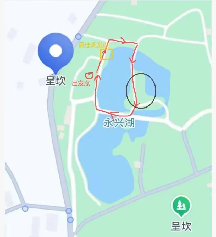 第三个地点上一个地点左手边的堤岸边,那个位置可以拍到大鱼在石桥上与烟花同框的画面,夏天荷花盛开后,会更漂亮。