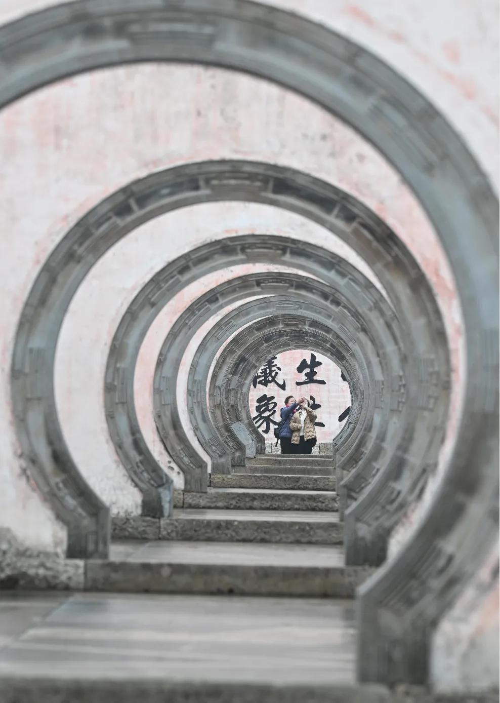 另一处游览点,叫八卦门。从景区正大门出去,沿着步道一直走,就可以看到路牌了。白天这个景点的游客会非常多,想要拍到满意的照片得等很久。因此建议早上七点左右赶早来拍,没有再到八卦湖转转,去吃个早餐,会是一个很舒服的路线。