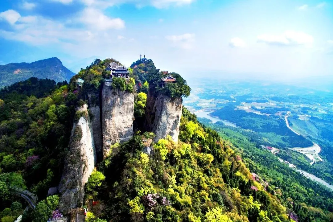 简介:蜀中名山,丹霞地貌奇观,以“铁索飞渡”非遗表演和险峻三峰著称,李白曾游历赋诗。