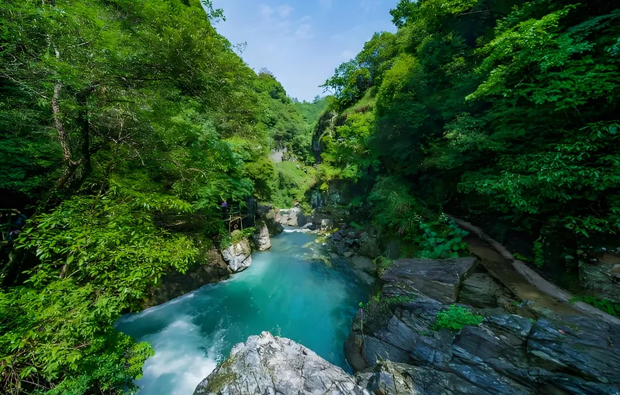 第二站:牯牛降——皖南小九寨,碧水丹山的视觉盛宴如果你没时间去四川九寨沟,那就来石台的牯牛降。这里古称“西黄山”,是黄山山脉向西延伸的主体。我去的时候真的惊呆了,龙门潭的水碧蓝见底,就像一块巨大的翡翠嵌在山谷里。游玩干货:这里是华东最后一片原始森林,空气里全是负氧离子。一定要走龙门潭那段,那是精华所在,还有四叠瀑布,水流从高处坠落,声如雷鸣。这里还是明末爱国诗人吴应箕的隐居地,满山的标语墙记录着红色历史,带孩子来既能看景又能受教育。