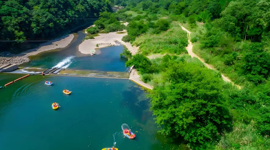 第三站:秋浦河——诗仙李白的“流量密码”“秋浦长似秋,萧条使人愁”,李白当年在这里留下了45首诗,其中17首专门写秋浦河。现在的秋浦河不仅是诗河,更是户外天堂。游玩干货:必去百丈崖,那里有独木桥、独木桩,特别适合带娃体验轻户外。如果你喜欢刺激,秋浦河漂流绝对不能错过,被称为“皖南第一漂”,全长5公里,水流时而平缓时而湍急,两岸风景如画。晚上一定要泡秋浦河富硒温泉,这里的温泉是真富硒,对皮肤特别好,住在河畔的民宿,推窗就是满眼的星河。