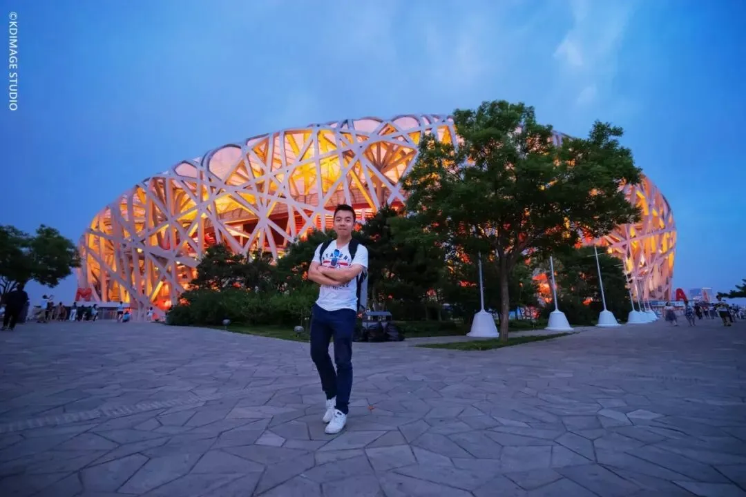 单在场馆外面就能感受到建筑的壮观,鸟巢周围一圈都适合拍照,想要拍全整个建筑,就需要在广场上或者在鸟巢东南角的小湖边,越过水面拍摄鸟巢,便可以拍到建筑本身与水中镜像。