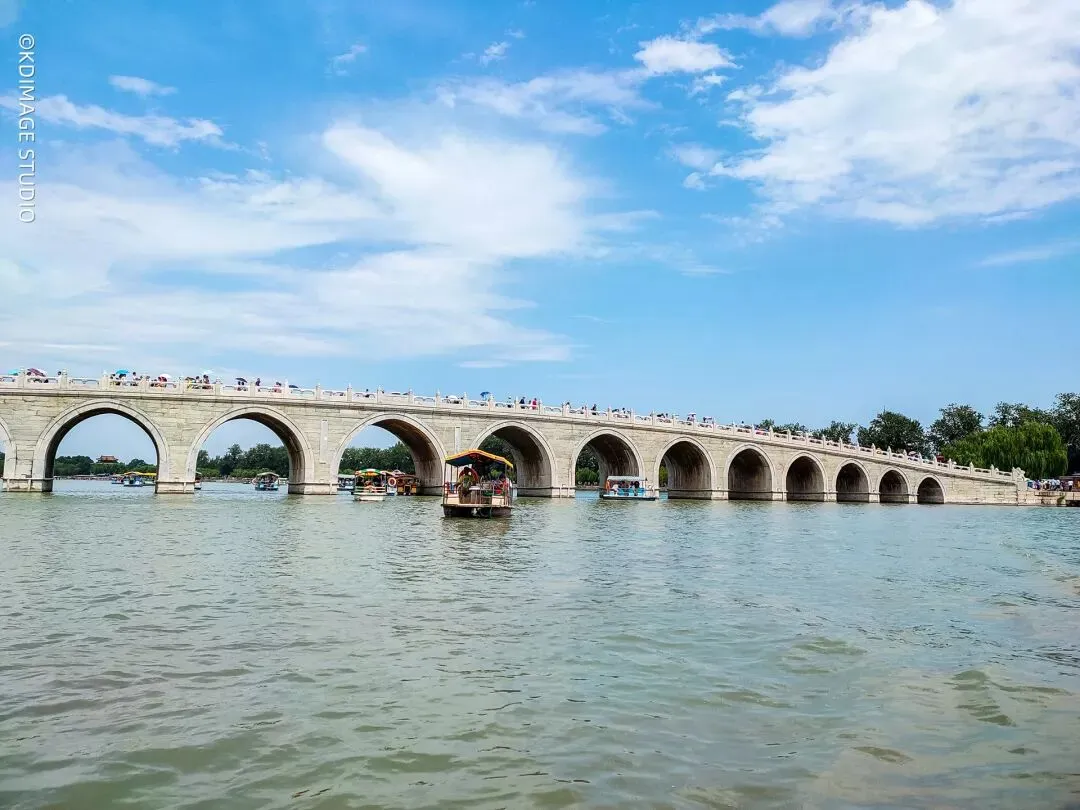 路过东宫门,过了仁寿殿,再过了德和园,一路上昆明湖、佛香阁、石舫、 苏州街、铜牛、玉带桥、十七孔桥等地方的景色都美不胜收。特别是十七孔桥,摄影师最爱的地方,无论哪个季节都有人会来这里打卡。