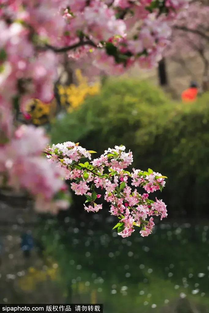 海棠垂丝、榆叶梅簇拥、樱花吹雪