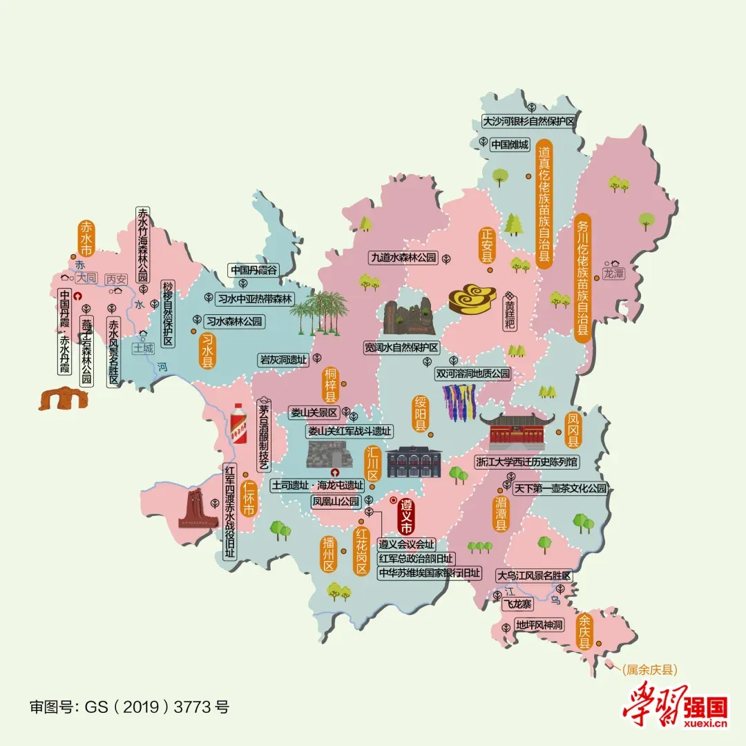 - 历史文化:遵义会议会址(红色圣地,1935年转折会议)、四渡赤水纪念馆、茅台镇(国酒原产地,古酒坊+夜景灯光秀)