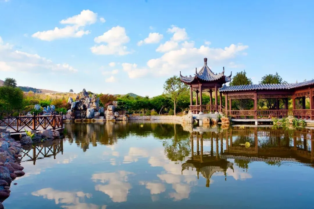 占地约180亩,园内种植有紫藤,白桦树,红叶石楠等珍稀植被