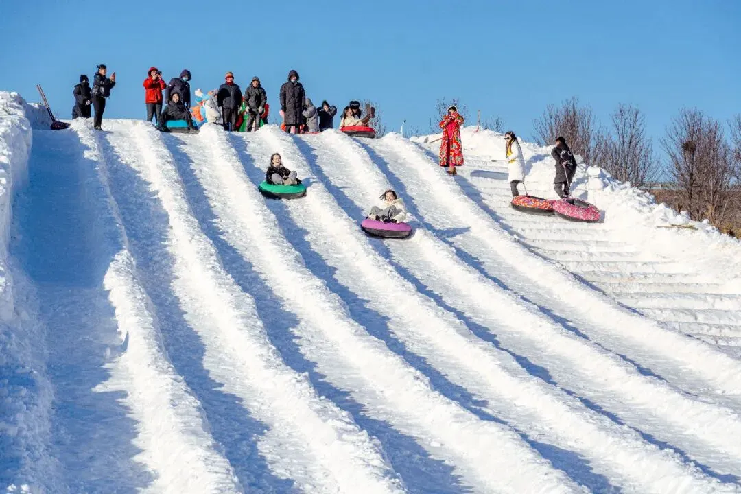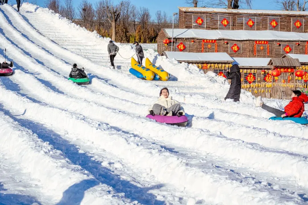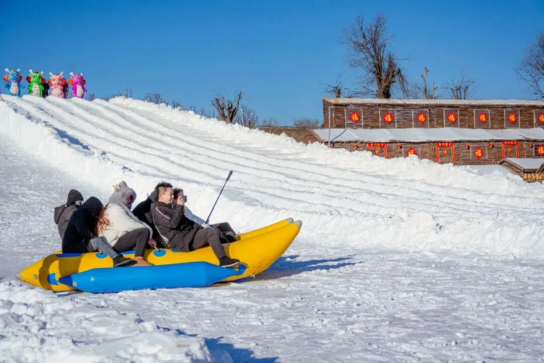 九龙峪冰雪乐园占地20000㎡,主要功能区分雪圈滑雪区、欢乐戏雪区、雪地设备游玩区,还特设了儿童滑道。相对传统滑雪场丰富了戏雪游戏种类,扩大了欢乐戏雪区面积,配备了急速滑雪圈、雪地坦克、雪地飞船、雪地撞撞球、雪地足球、雪地悠波球、雪地陀螺等经典戏雪器具。