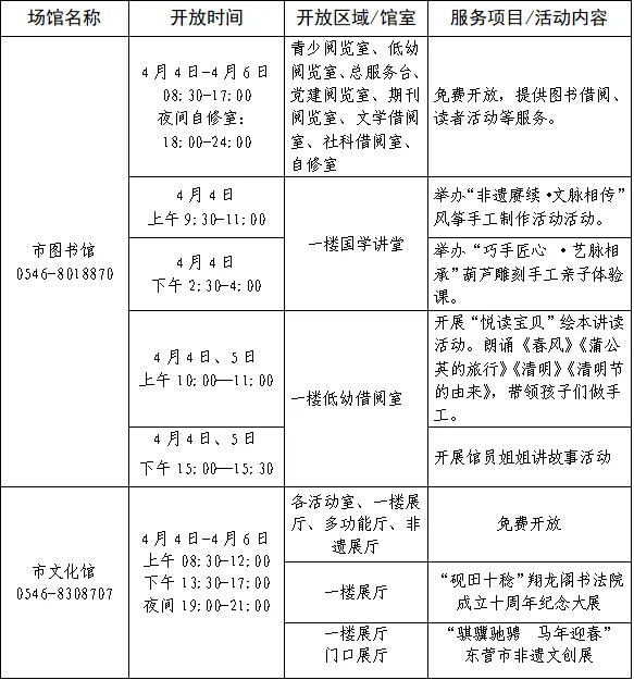东营市美术馆、东营市文化馆、东营市吕剧博物馆、东营市图书馆、东营市历史博物馆、黄河文化馆