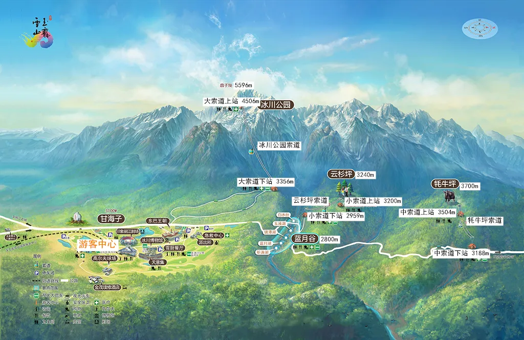 -大中小索道选择建议:冰川公园大索道最高可登顶4506米,挑战最大,但容易高反。云杉坪小索道适合不想登顶或携带老人小孩的游客。牦牛坪中索道景色和云杉坪相似,但视野更开阔,游客数量较少。