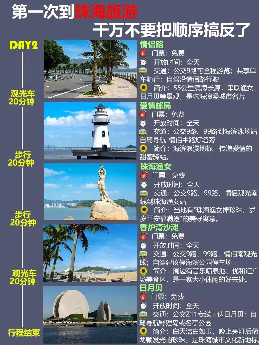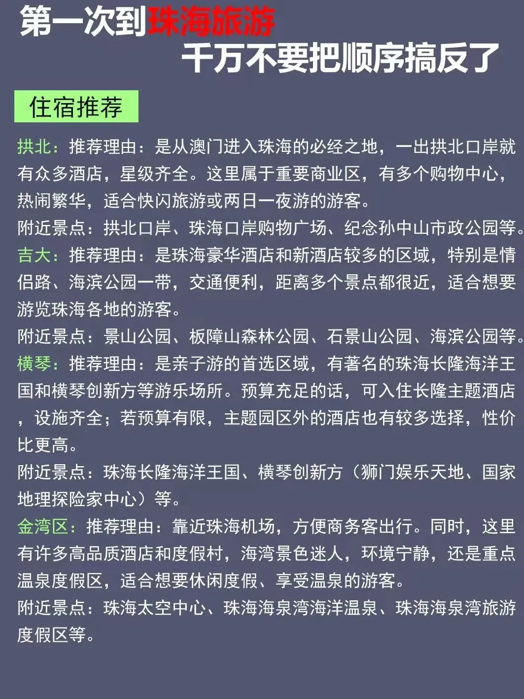 您现在的位置是:首页 > 国内旅游目的推荐 > 正文 国内旅游目的推荐 珠海3天2夜旅游攻略|路线+美食+住宿. admin2026年04月02日 21:17:06国内旅游目的推荐1 珠海3天2夜旅游攻略|路线+美食+住宿.珠海3天2夜旅游攻略|路线+美食+住宿。#干货分享 #珠海旅游 #珠海周边游 #周末去哪儿 #珠海旅游攻略 转载请说明来源于"旅荐网",部分内容转载自网络,如有侵权请联系qlwl@foxmail.com删除 本文地址:https://www.15386.cn/post/151777.html 上一篇 山野记~最新平潭旅游攻略|蓝眼泪追泪指南 上·纯攻略 相关文章 山野记~最新平潭旅游攻略|蓝眼泪追泪指南 上·纯攻略 厦门四天三晚旅游攻略(2026保姆级,轻松不赶趟) 游玩攻略 | 广安奇妙夜带你解锁文旅游玩新方式 江西南昌旅游四天三晚超详细旅游攻略来啦 南昌海昏侯国遗址公园旅游攻略 新版《旅游规划通则》今起实施,出游更安心! “诗韵大河·金色花海”超全游玩攻略一键get! 跟着课本去旅行|书页里的风景,素材给你找齐了,直接收藏! 拉萨纳木措景区保护开发有限公司安全管理制度及应急预案体系编制服务公开比选公告 2026年大同旅游分析报告:专业机构基于真实评价优选TOP10旅行社榜单 发表评论 取消回复 评论列表 这篇文章还没有收到评论,赶紧来抢沙发吧~